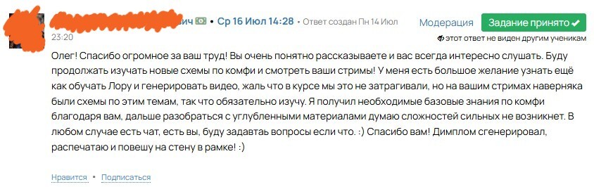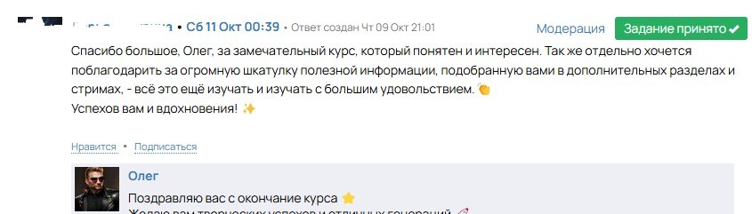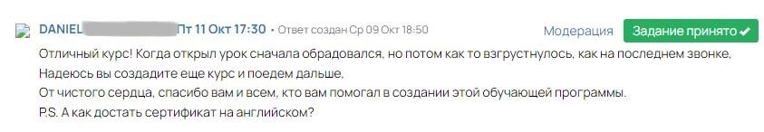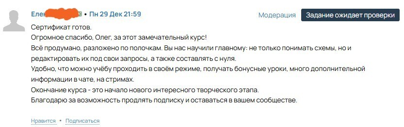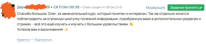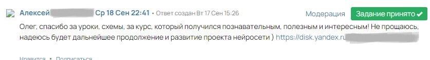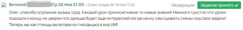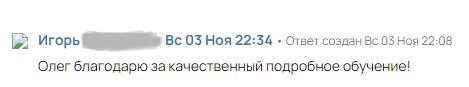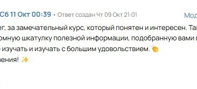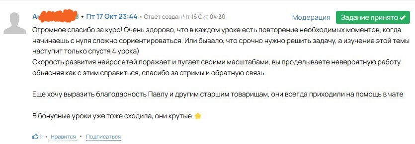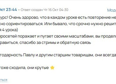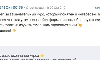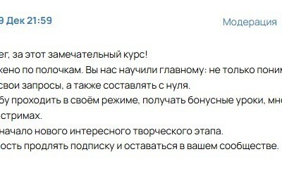 Это закрытая телеграмм группа, где ты будешь получать поддержку по урокам и разбор выполненных работ от автора курса